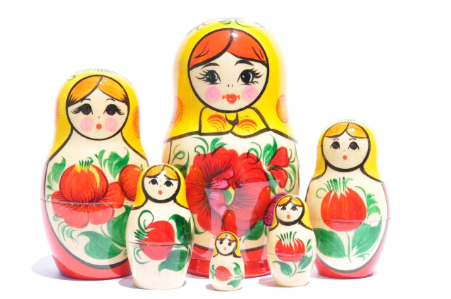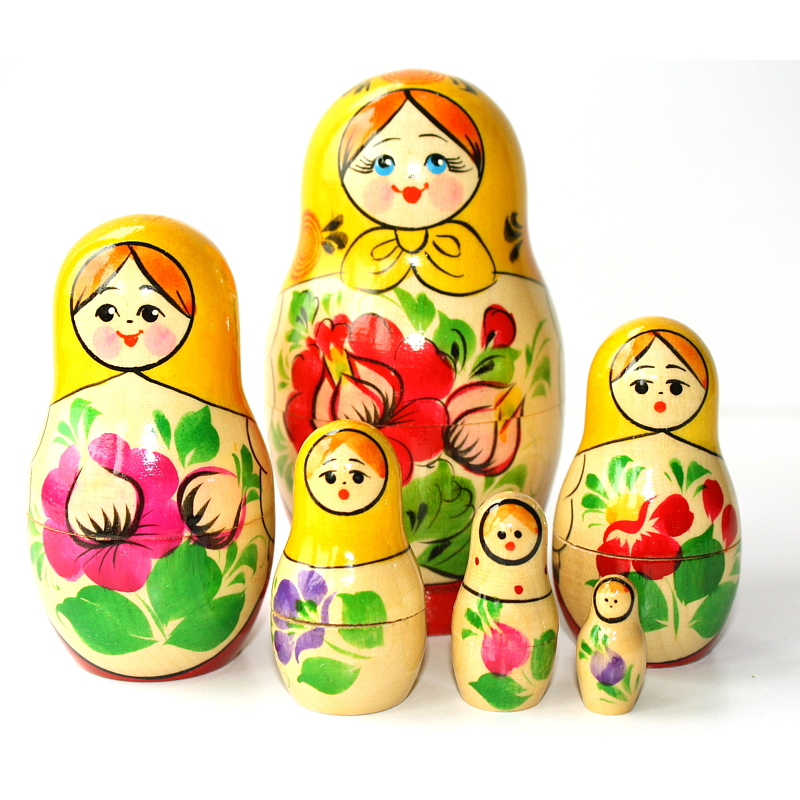 Vyatka Matriochka, Ensemble de 6, Rouge et jaune foulard